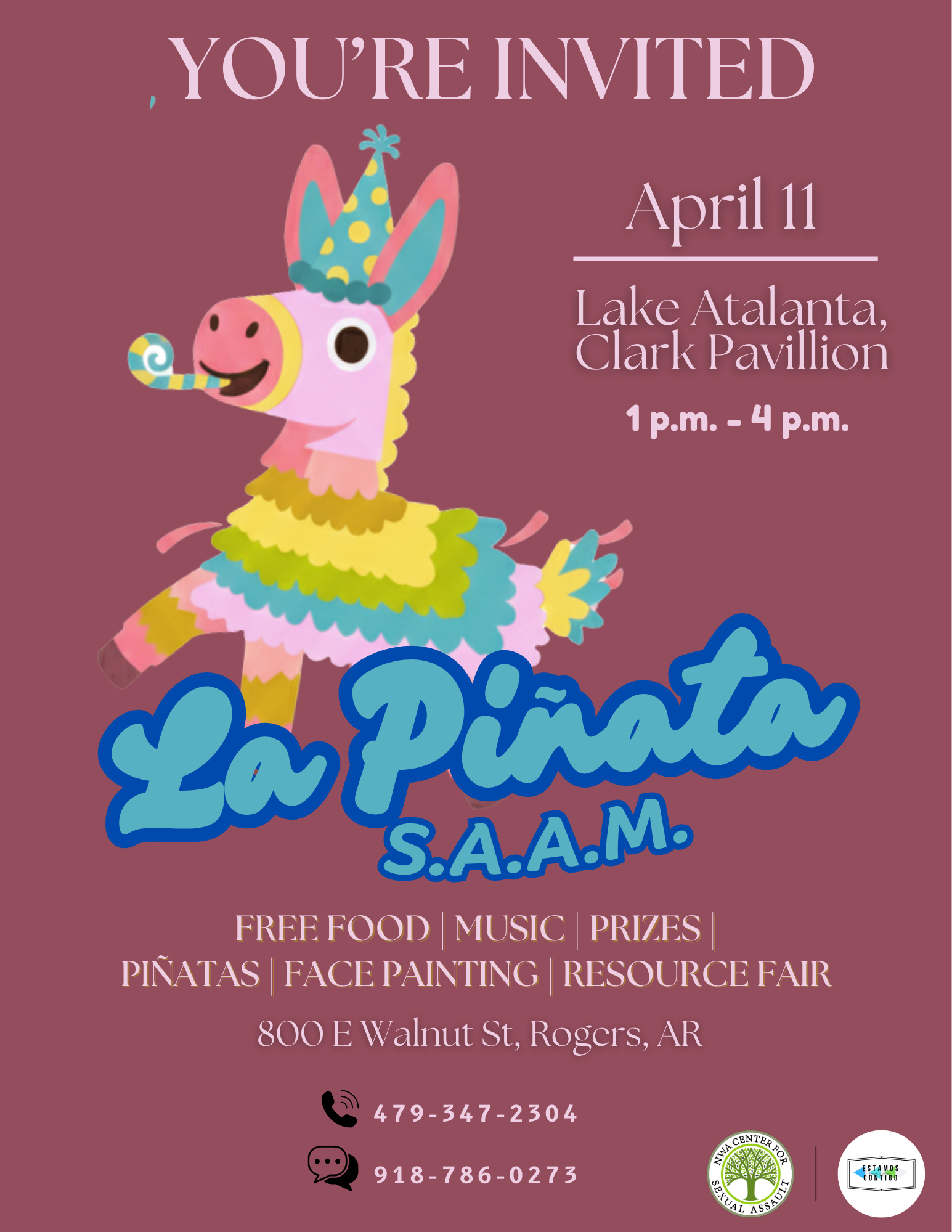 Every year in April, we host Piñata SAAM in honor of Sexual Assault Awareness Month. If you are interested in tabling at our event, we encourage you to save your spot by registering at the button below. Here are the details about our next event: